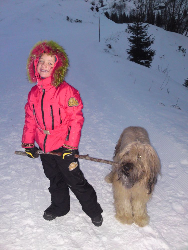 Loulou (Ellarah v.d.M) war im Winterurlaub in Österreich und hat sich mit Isi im Schnee vergnügt. Außerdem hat sie für Brennholz und einen warmen Kachelofen gesorgt indem sie von ihren Spaziergängen immer ihre Stöckchen nach Hause trug.